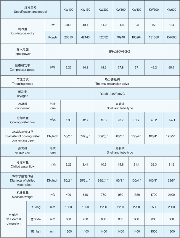 █ 采用殼式蒸發(fā)器,可內置自動補水裝置,節(jié)省膨脹水箱,方便安裝及保養(yǎng)。適用小溫差大流量的工作要求。